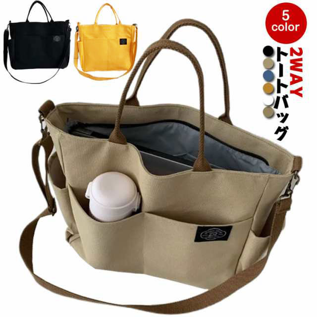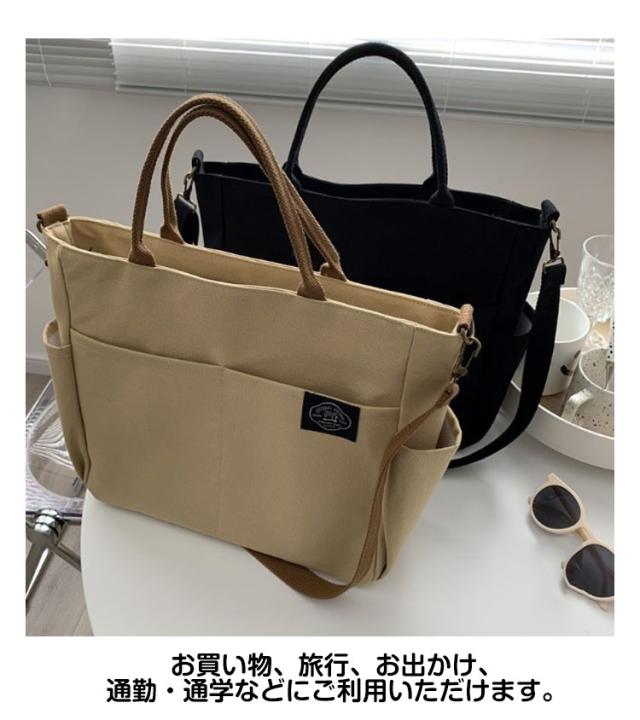 送料無料 トートバッグ A4 キャンバス レディース 大容量 ファスナー付き 2way ショルダーバッグ 斜めがけ 軽量 キャンバス 帆布 無地 マザーズバッグ かわいい キャンバストート 肩掛け 小さめ 黒 カジュアル 通勤 通学