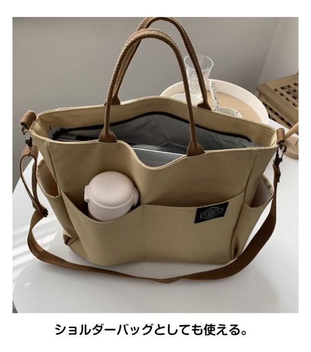 | 軽量キャンバストートバッグが登場。 シンプルで大容量。 ショルダーバッグとしても使える。 A4サイズ、14インチパソコン対応可能。 お買い物、旅行、お出かけ、通勤・通学などにご利用いただけます。 | |