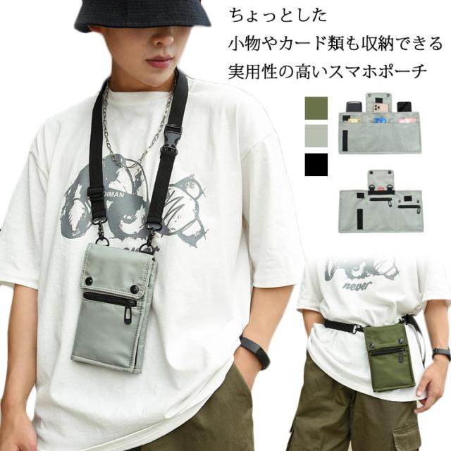 【送料無料】スマホポーチ メンズ レディース 2way ケース 軽量 ウエストポーチ スマホバッグ アイフォン スマートフォン ウェストポーチ 斜めかけ iphone ベルトポーチ 携帯 大容量 カードケース カード入れ 定期券 お札 撥水 防水 無地 ギフト