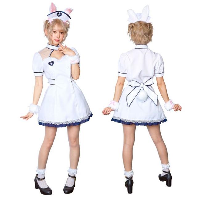 ■商品名:HW レディアニマルナース×うさぎ コスチューム レディースサイズ 女性 ナース うさぎ ワンピース ハロウィン コスプレ 衣装 仮装 変装