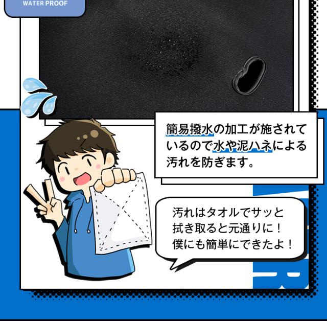 ・本製品の生地には簡易撥水機能がありますが、使用状況や時間経過により機能が低下することがあります。