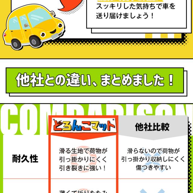 「どろんこマット」は意匠登録された商品です。意匠権を侵害する模倣品を製造・販売・輸入することは法律で禁じられており、権利侵害が発見された場合、出店規約に基づき出店停止処分となります。