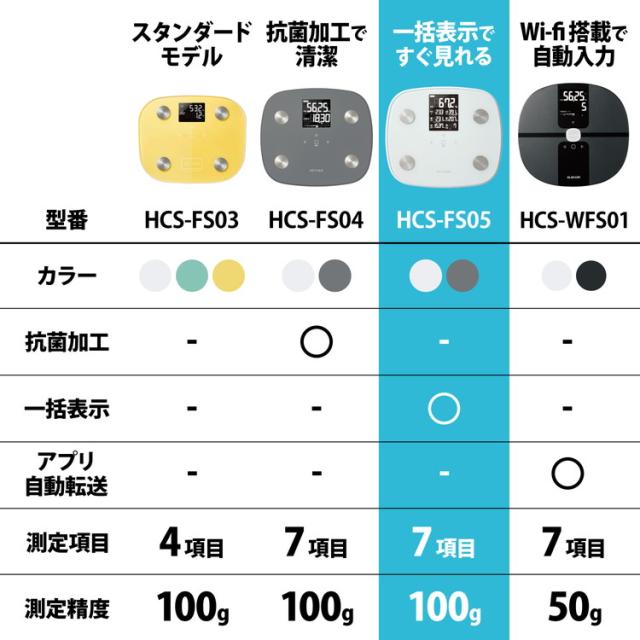 エレコム 体組成計 体重計 ヘルスメーター 自動認識機能付 MRI測定 100g単位 大画面 測定項目一覧表示 体脂肪率 BMI 内臓脂肪レベル 皮下脂肪率 ホワイト HCS-FS05WH(代引不可)【送料無料】