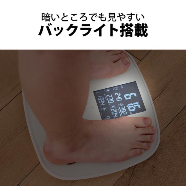 ■体重・前回体重値・内臓脂肪レベル・皮下脂肪率・BMI・体脂肪率・骨格筋率・基礎代謝の8項目が測定可能です。