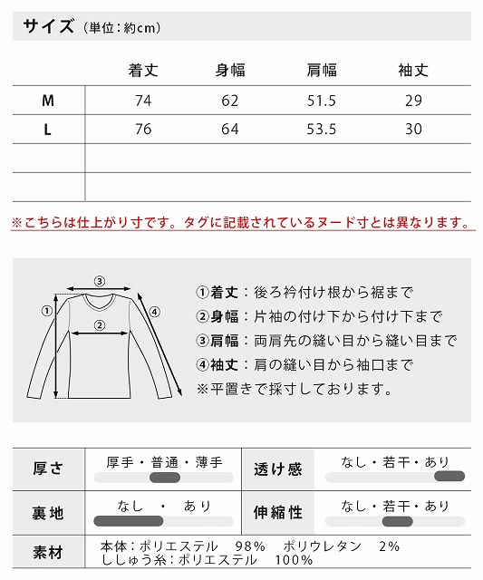 | サイズ | 着丈 | 身幅 | 肩幅 | 袖丈 |