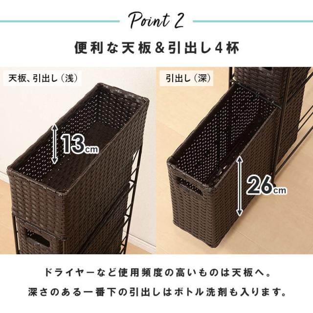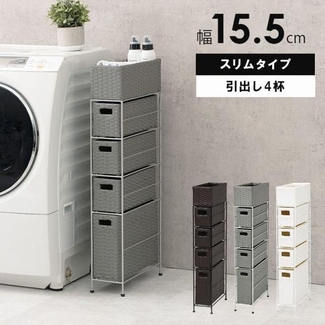 ランドリー収納 隙間収納 スリム ラタン 隙間 4段 引き出し 15cm 奥行40 完成品 籐 チェスト 収納 薄型 ランドリーラック おしゃれ アジャスター 低め ロー
