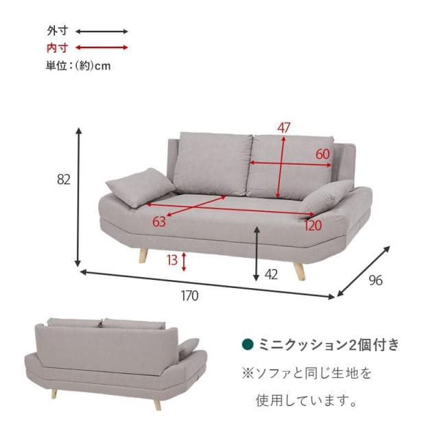 (約)幅170×奥行96×高さ71/82×座面高31/42cm