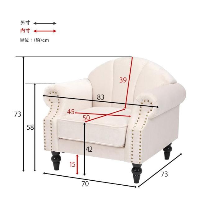 ソファ 一人掛け 1人掛けソファ コンパクト ウレタン 1人用 エレガント ソファー おしゃれ 脚付き ゆったり 一人暮らし リビング アンティーク 高級