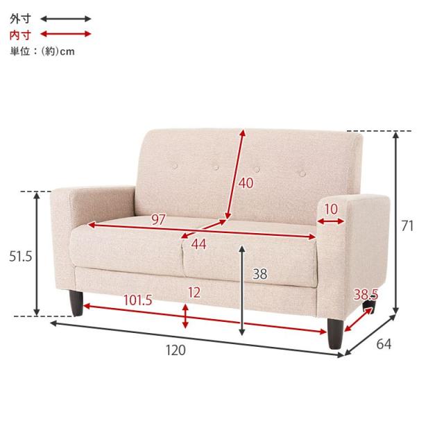 ソファ 2人掛け 2人掛けソファ コンパクト 幅120 ファブリック 2人用 肘掛け ソファー おしゃれ 脚付き ゆったり 一人暮らし リビング 北欧 ロータイプ