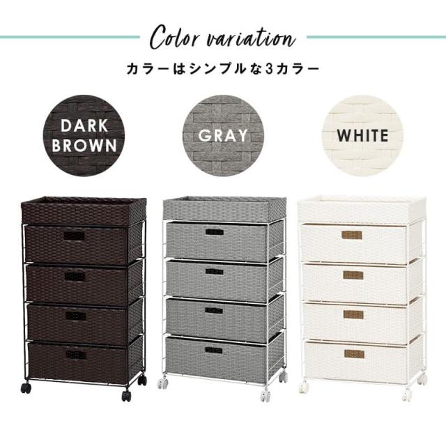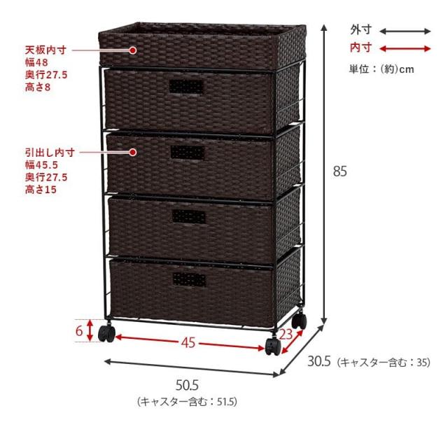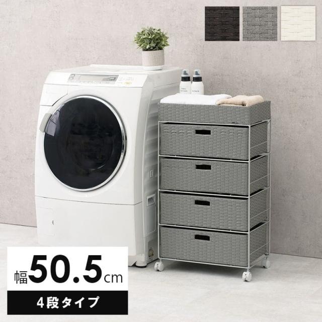 ランドリーチェスト ラタン 4段 引き出し 幅50 奥行30 スリム ランドリー収納 キャスター 籐 ワゴン カゴ 収納 薄型 ランドリーラック おしゃれ ロータイプ