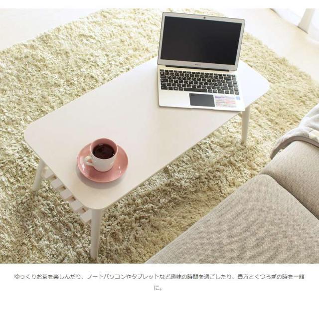 ローテーブル 折りたたみ 折りたたみテーブル スリム 小さめ 木製 おしゃれ センターテーブル 長方形 テーブル パソコン リビング 棚付き