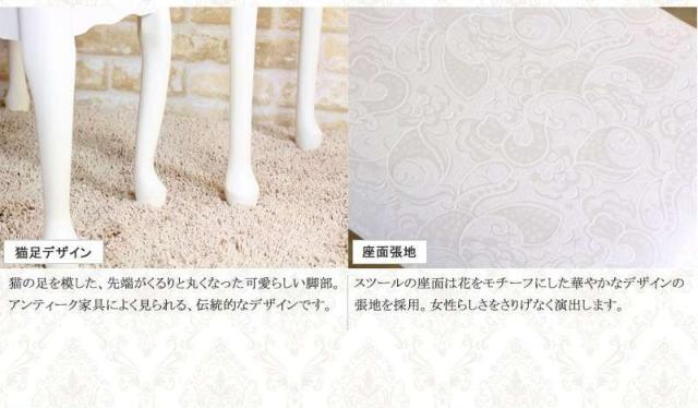 化粧台 ドレッサー 大きい 椅子 机 テーブル おしゃれ 猫足 収納 メイクボックス スリム 姫 白 猫脚 幅70 スツール 収納付き 1面鏡椅 チェア