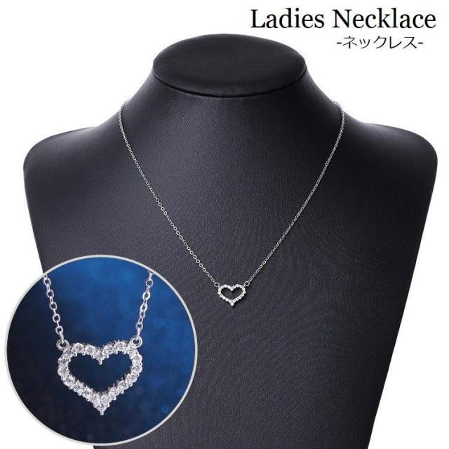 ネックレス ペンダント レディース アクセサリー 首飾り ハート ラインストーン シルバーカラー 可愛い おしゃれ 服飾小物 女