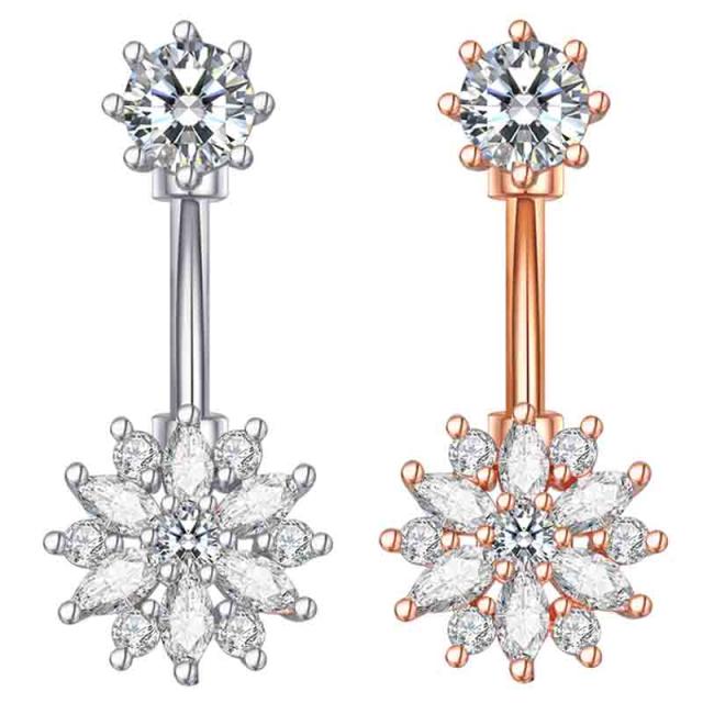 ピンクゴールドとシルバーから選べるキラキラのキュービックジルコニアでお花をデザインした14ゲージのバナナバーベル型ボディピアス。