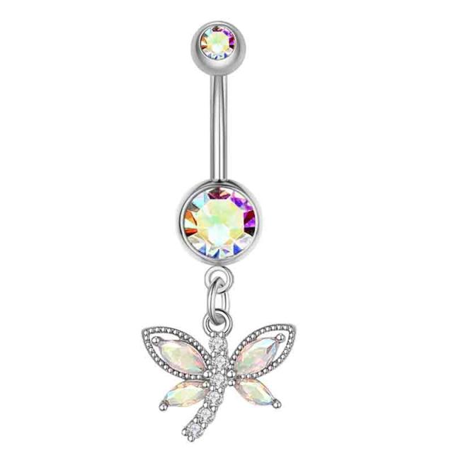 [14G カーブバーベル ボディピアス] バタフライチャームへそピアス 14ゲージ ヘソピアス 臍ピアス メンズ レディース ボディーピアス サージカルステンレス316L ジルコニア クリスタル ジュエル 石付き キラキラ ストーン ちょう チョウ 虹色 レインボー 揺れる 綺麗 人気