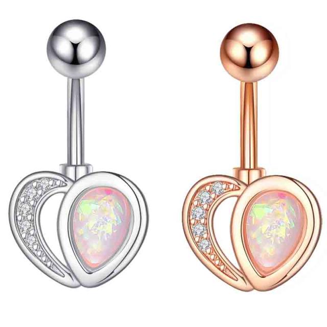 [14G カーブバーベル ボディピアス] オパールハートへそピアス 14ゲージ ヘソピアス 臍ピアス メンズ レディース ボディーピアス サージカルステンレス316L ジルコニア クリスタル ジュエル 石付き キラキラ ストーン ピンクゴールド シルバー おしゃれ 誕生日 クリスマス