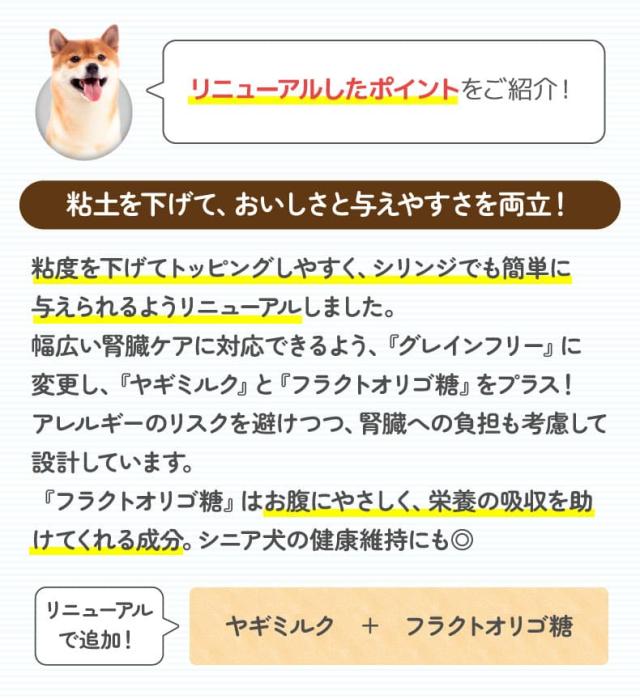 今回のリニューアルでは より進んだ腎臓ケアが必要なワンちゃんにも対応しています。