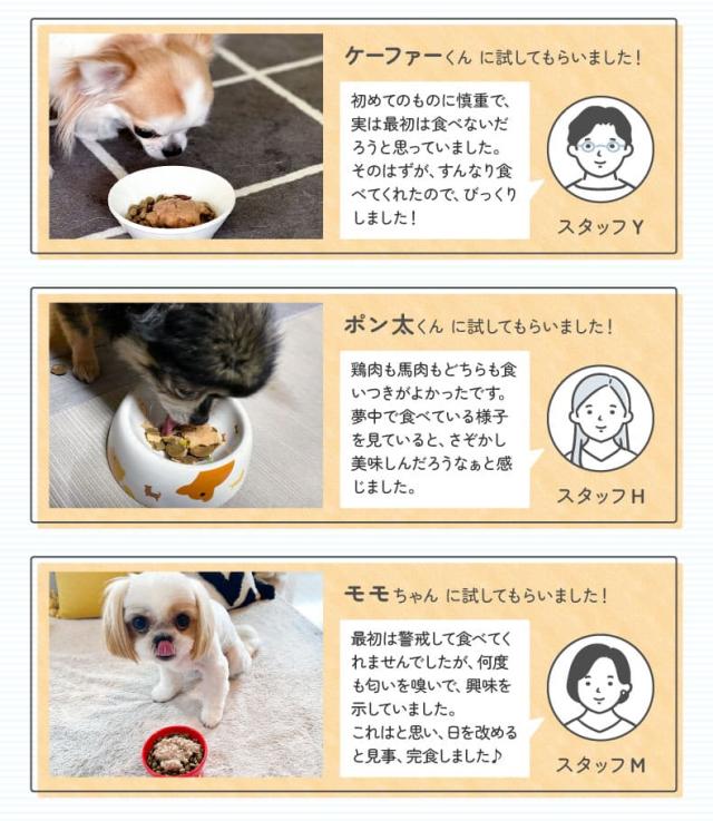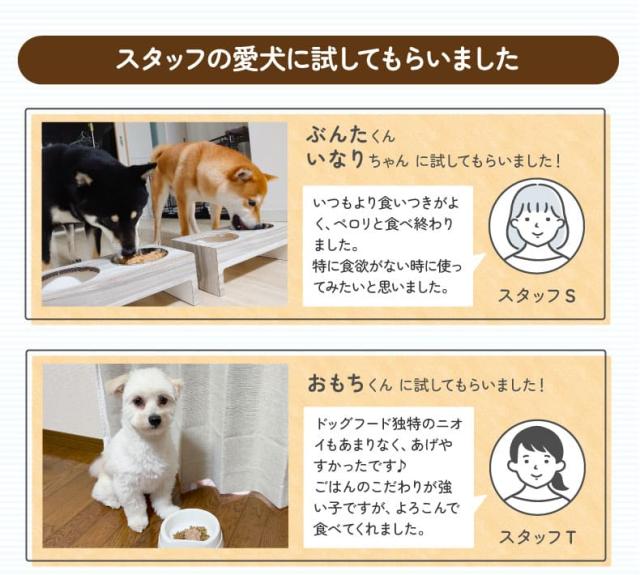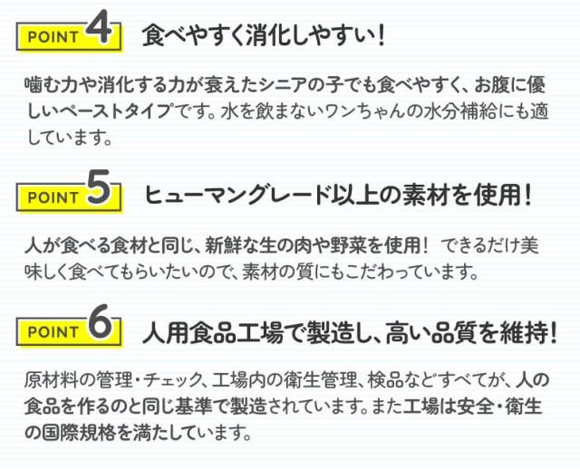 噛む力や消化する力が衰えたシニアの子でも食べやすく、お腹に優しいです。水を飲まないワンちゃんの水分補給にも適しています。