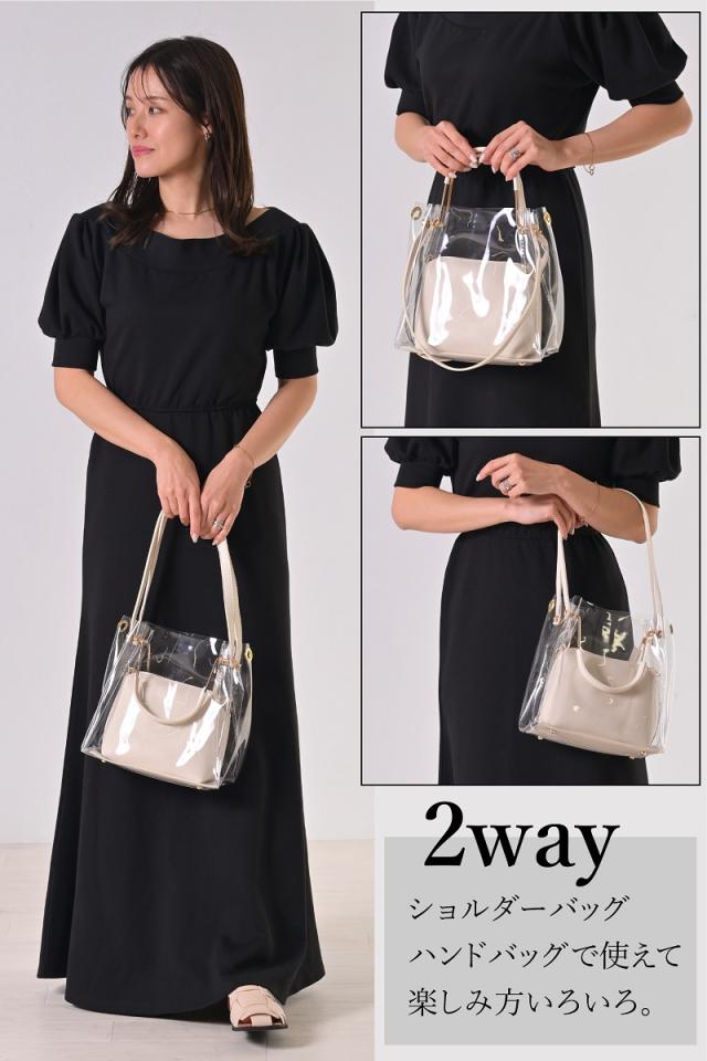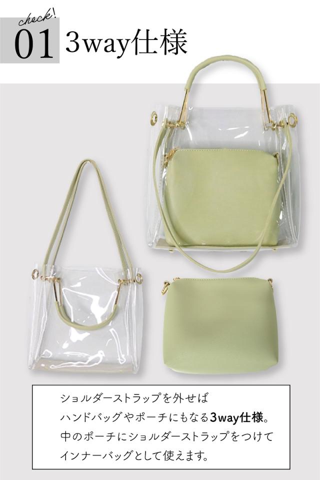 ハンドバッグ、ショルダーバッグ 、トートバッグでお使い頂ける3WAYクリアバッグです。