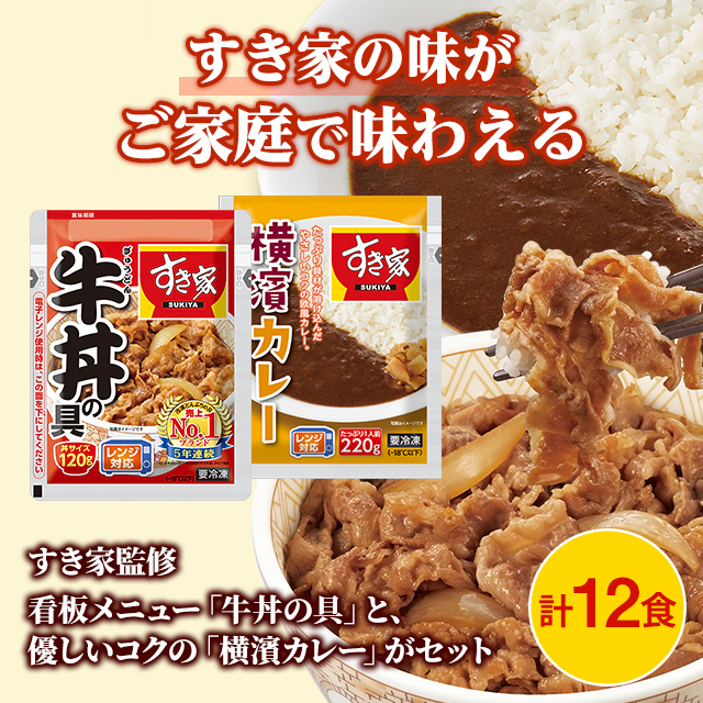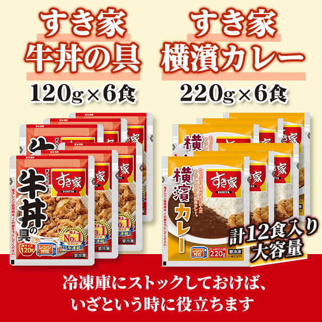 送料込み すき家 牛丼の具 120g×6食 すき家 横濱カレー220g×6食 計12食 冷凍 総菜 牛丼 カレー セット 冷凍食品