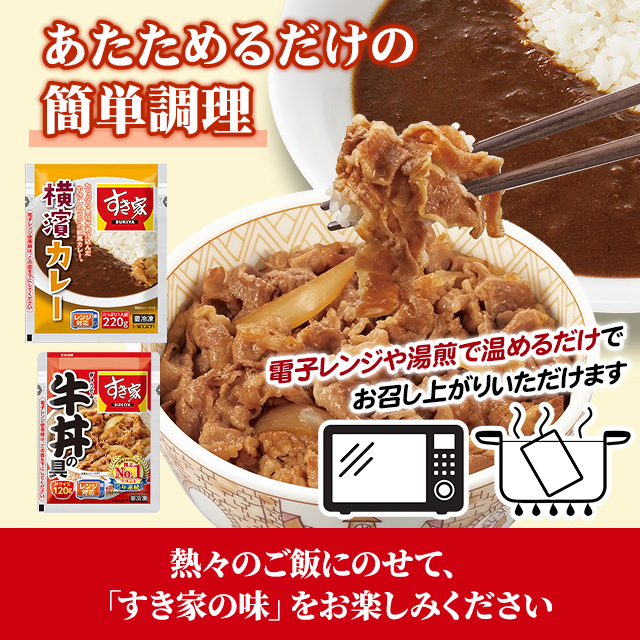 商品名 すき家 牛丼の具 120g×6食 すき家 横濱カレー220g×6食 計12食 容量 牛丼の具120g×6食