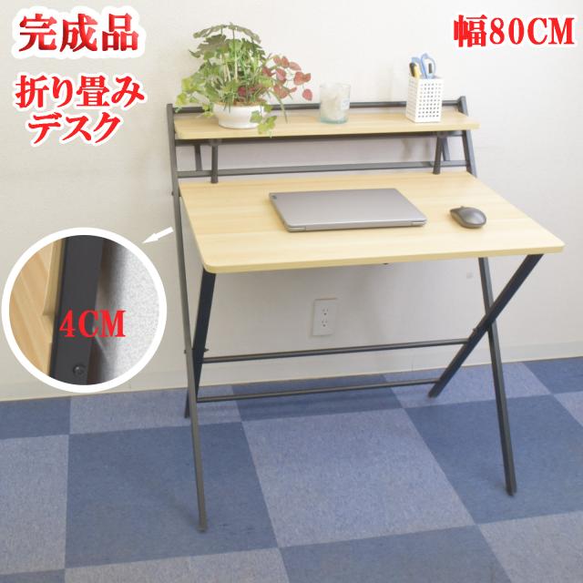 折りたたみデスク 完成品 幅80cm 奥行51cm パソコンデスク 棚あり テーブル 学習机 折り畳みテーブル 一人暮らし机 コンパクト収納