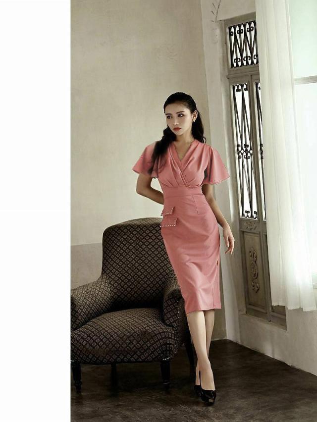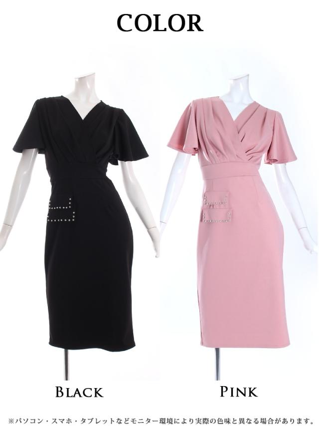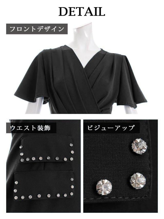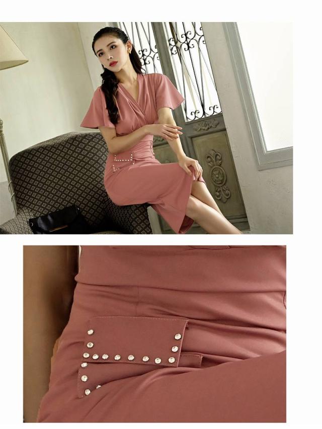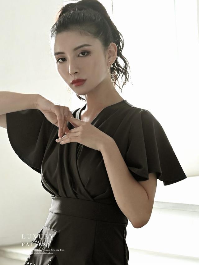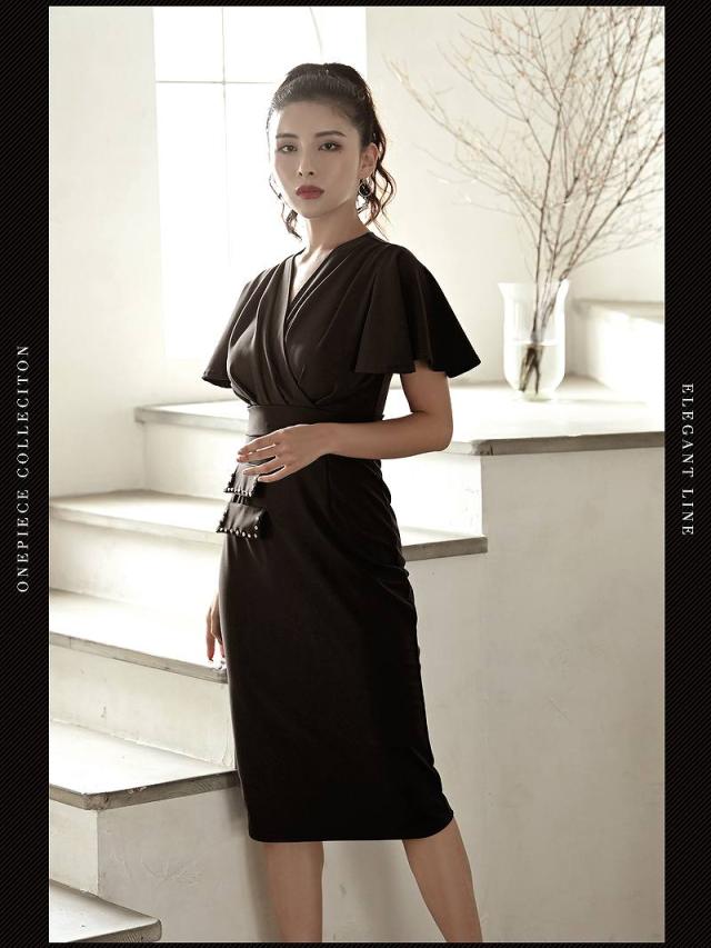 ☆カシュクールデザインのシンプルなワンカラーキャバワンピは二の腕カバー効果抜群のフレア袖となっておりハイウエスト切り替えデザインがスタイルアップ効果も期待できる韓国キャバドレスです♪