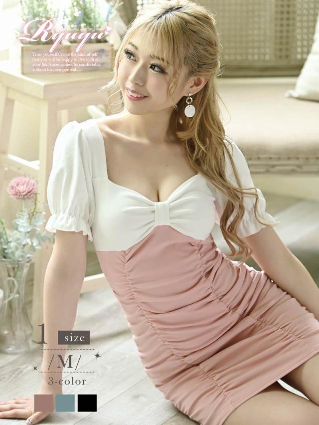 キャバ ワンピース ワンピ キャバワンピース キャバワンピ レディース パーティードレス Ryuyu ミニ パフスリーブ 袖付き
