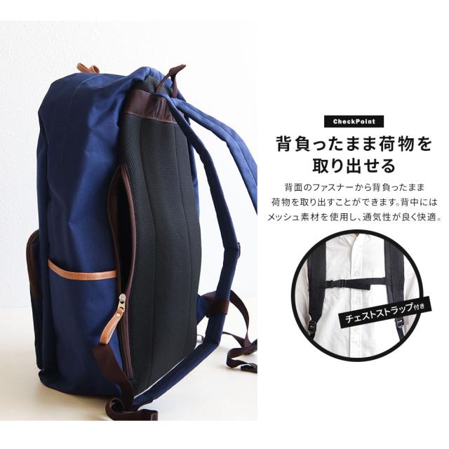 背中にはメッシュ素材を使用し、通気性が良く快適です。