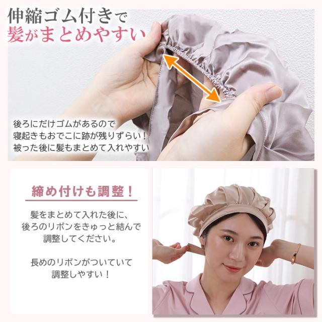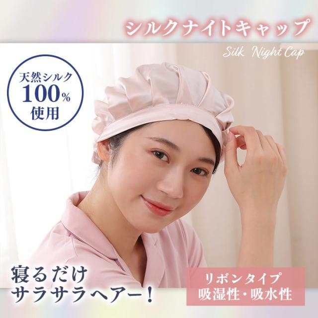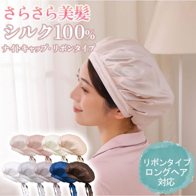 ナイトキャップ シルク100% 6A ロングヘア シルクキャップ かわいい レディース ナイトキャップ リボン 睡眠 就寝用 帽子 女性 シルク製 保湿 ヘアケア プレゼント 美容師 リボンで結ぶタイプ