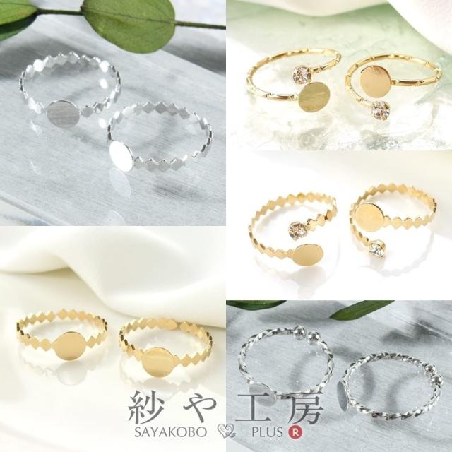 リングパーツ 平皿付き 【選べる2色/6デザイン】 ゴールド シルバー 平皿6mm 2個 2ヶ リング金具 リング台 フリーサイズ リングベース 約0.6cm アクセサリー パーツ パーツ 問屋 セッティング 台付 貼付 ハンドメイド資材 フォークリング アジャスタブル さや工房 手作り