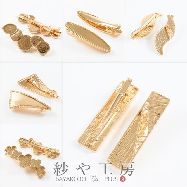 ヘアクリップ バレッタ 変退色防止加工済 金属アレルギー対応 いろいろモチーフ 【選べる15種】 ゴールド 2個 アクセサリーパーツ