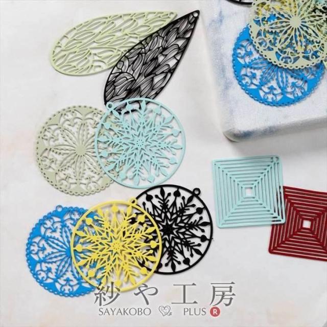 チャーム 透かしパーツ 【選べる9種】 4個 4ヶ 透かし模様 アクセサリーチャーム 色付き 幾何学 透かし模様 大きい おおぶり アクセサリー パーツ パーツ メタルパーツ 金属チャーム 金属パーツ 材料 問屋 ハンドメイド資材 おおぶり カラーパーツ さや工房