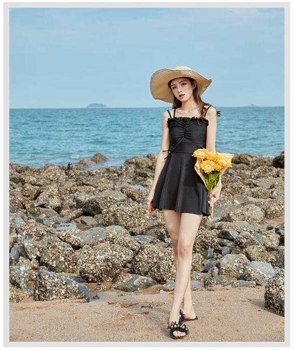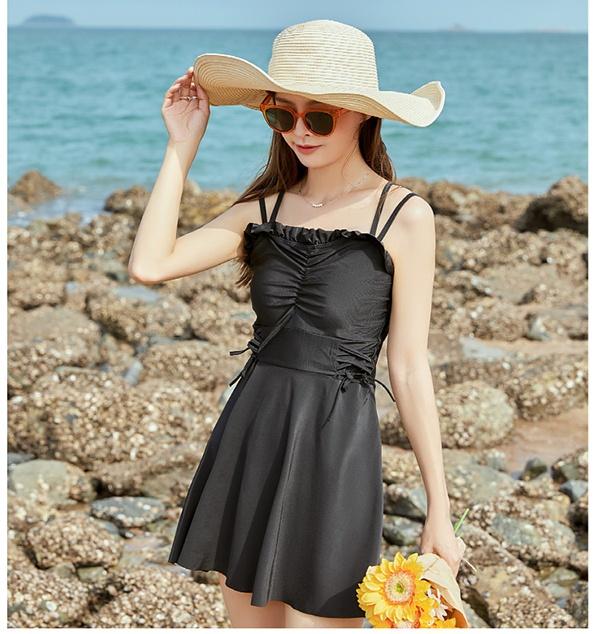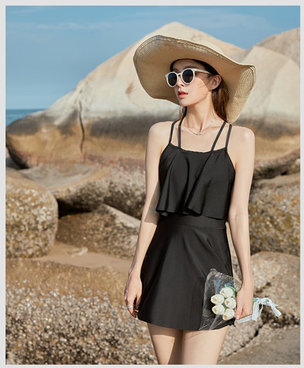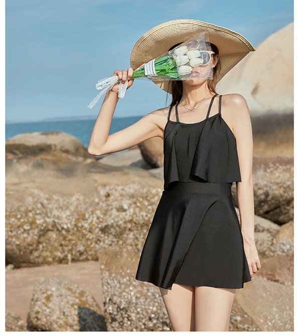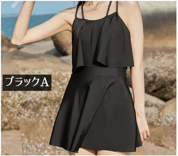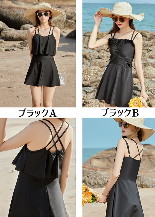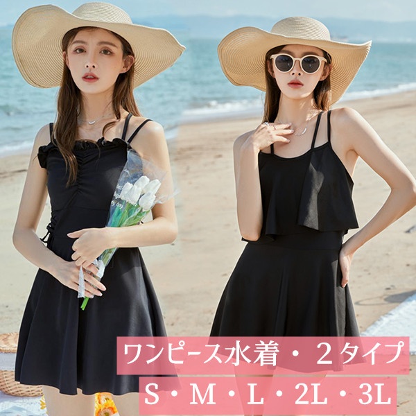 水着 レディース ワンピース水着 大きいサイズ キャミソール フリル水着 体型カバー ショートパンツ シャーリング リボン ブラック 無地 シンプル 海 プール 両行 温泉 韓国 女性用 セクシー 大人可愛い 韓国風 20代 30代 女性用 大人水着 ブラック S M L 2L 3L d1340s1s1c9