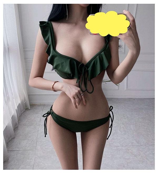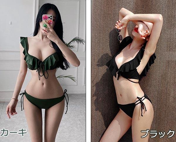 水着 レディース ビキニ フリル ビキニ リボン 紐ビキニ シンプル かっこいい 大人スタイル リボン パッド付 カーキ ブラック 海 プール 旅行 温泉 かわいい セクシー 韓国風 大人 女性用 db040zezec9