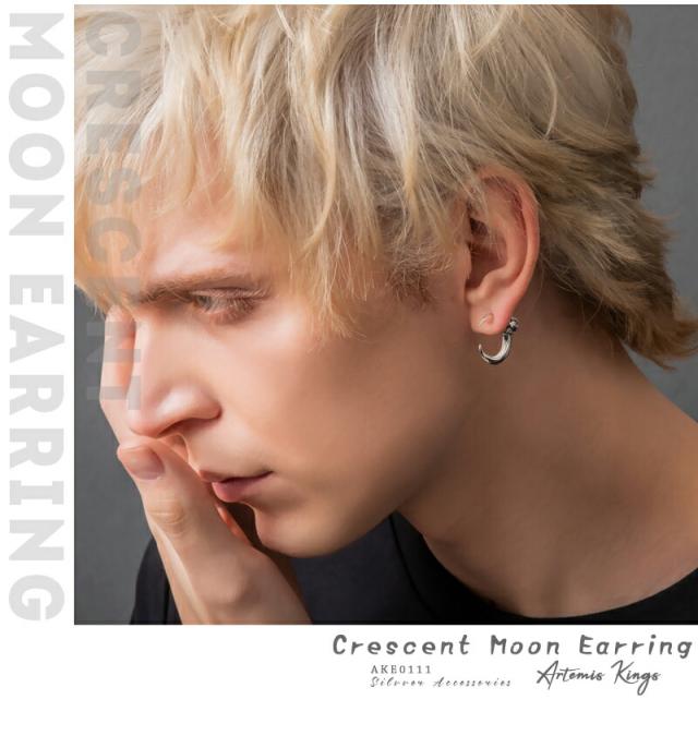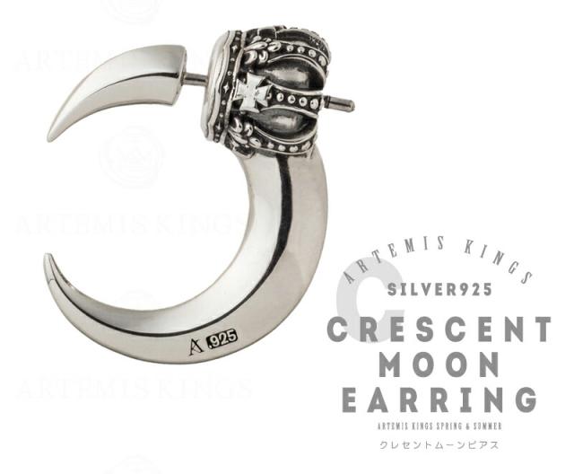 アルテミスキングス クレセント ムーン ピアス 1P 片耳用 スタッドピアス シルバーピアス 耳飾り メンズ 男性 王冠 三日月 月 スタッズ