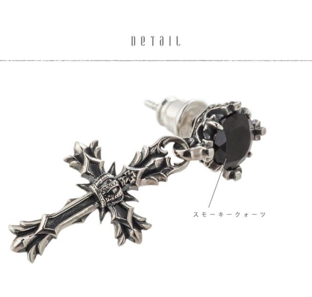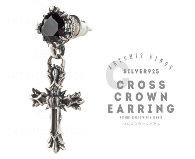 アルテミスキングス クロス クラウン ピアス 1P 片耳用 スタッドピアス シルバーピアス 耳飾り メンズ 男性 王冠 十字架 スモーキー
