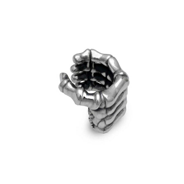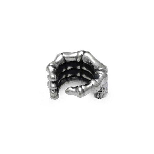スカルの手が耳を掴むデザインのイヤーカフ。右手タイプ。