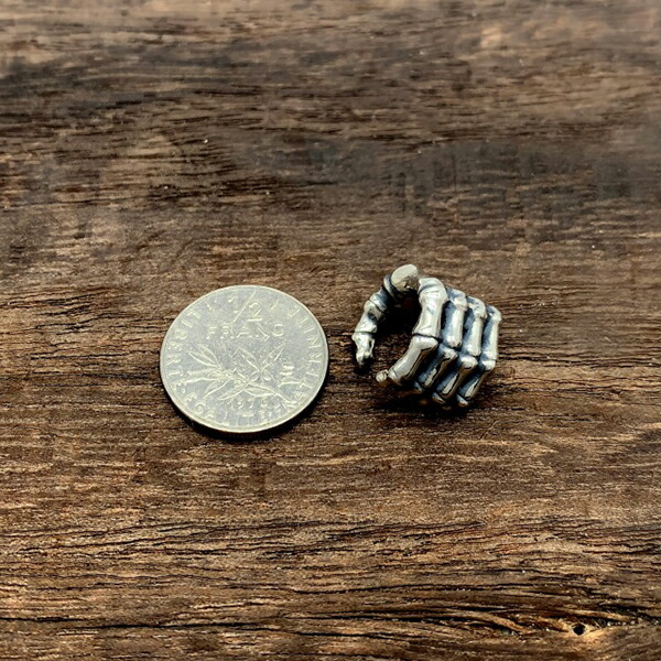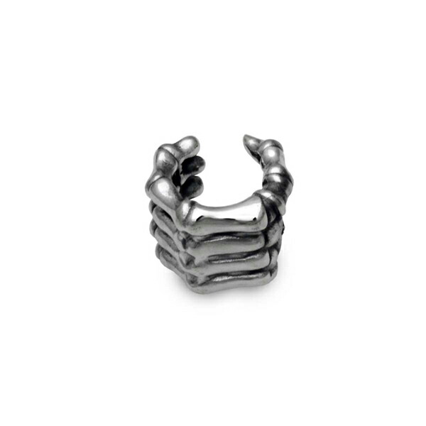 スカルの手が耳を掴むデザインのイヤーカフ。左手タイプ。