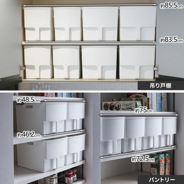収納 ケース ボックス 容器 取っ手付き 持ち手つき 戸棚 棚 パントリー 食糧庫 ストック 保管 保存 整理整頓 クローゼット 棚上 WIC 幅18.5、幅24 奥行33.4 高さ22 cm センチ ポリプロピレン製 日本製 吊戸棚 吊り戸棚 日用品 タオル 取り出しやすい 衣類 缶詰 調味料 お弁当箱 キッチン雑貨 小物収納 キッチングッズ ホワイト 透明 半透明 白 クリア 前面持ち手 出し入れ簡単 すっきり 片付く ワイド4個 スリム4個 セット割引 シンデレラフィット お得 4962191015293 4962191015286
