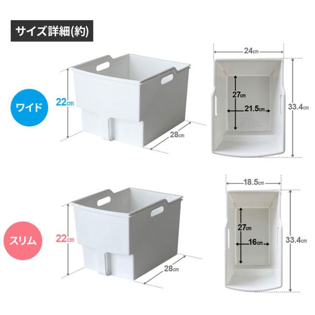1個あたりサイズ(約):ワイド/幅24×奥行33.4×高さ22cm スリム/幅18.5×奥行33.4×高さ22cm