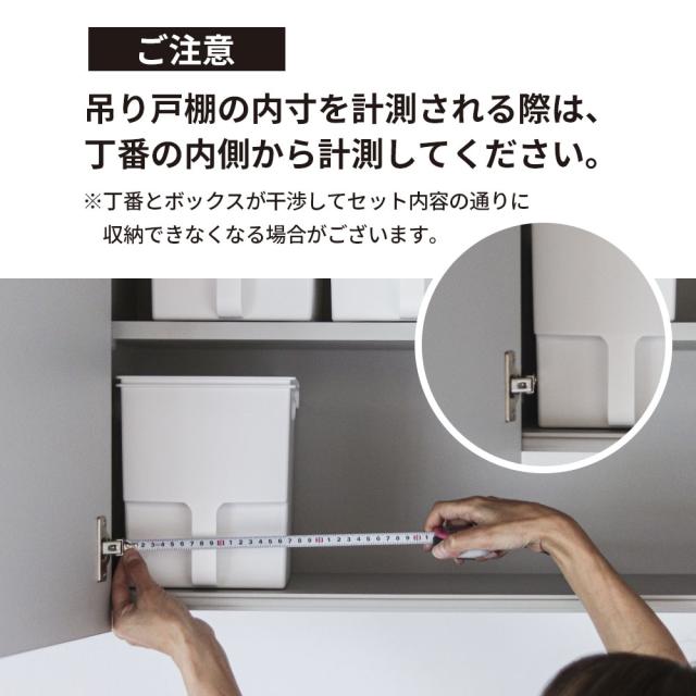 ※ぴったりサイズになりますが、扉の丁番が干渉してボックスが引き出しにくくなる場合がございます。必ず丁番の内側からの内寸を測っていただきますようお願いいたします。
