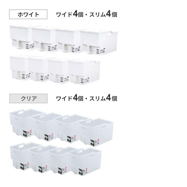 キッチン収納 吊り戸棚ボックス まとめ買いセット ワイド・スリム 8個セット ( ワイド4個 + スリム4個 ) ホワイト / クリア | 吊り戸棚収納ボックス 収納ケース ストッカー ボックス 取っ手付き 持ち手付き 吊戸棚 パントリー 食器棚