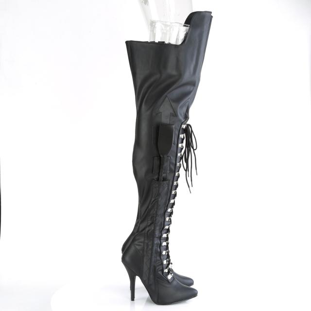 Pleaser(プリーザー) SEDUCE-3082 ウィップ&ウィップホルダー付きサイハイブーツ 女王様ブーツ つや消し黒◆取り寄せ