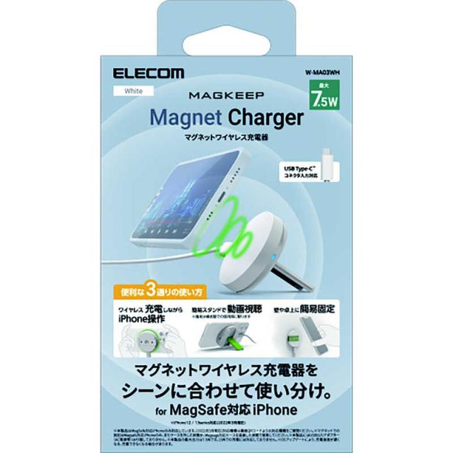 エレコム ELECOM ワイヤレス充電器/マグネット内蔵/7.5W/卓上タイプ/3way/ホワイト W-MA03WH