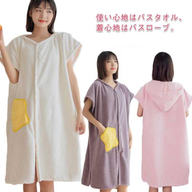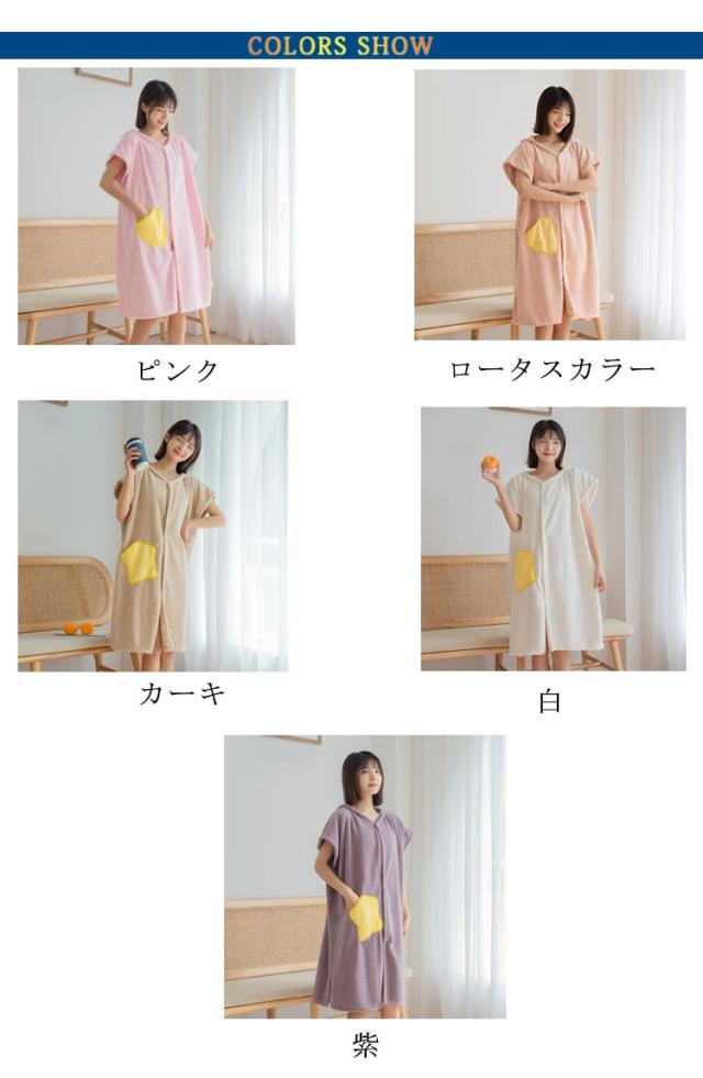 フード付 スローブ タオル ワンピース 着るバスタオル バスタオル ルームウエア レディース ラップタオル 着るタオル バスグッズ バス用品 お風呂用品 ボタン ポケット 無地 かわいい ポケット付き ローブ 巻きタオル 部屋着 吸水 速乾