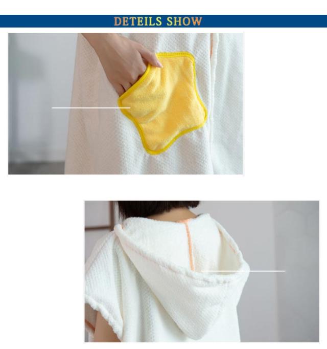 | 使い心地はバスタオル、着心地はバスローブ。 お風呂上がりにサッと着るだけで快適な着るバスタオル。 吸水性と速乾性に優れた生地を使用。 ふんわりと柔らかく、気持ちの良い肌触りが魅力的! ウエストに便利なポケット付き。 | |
