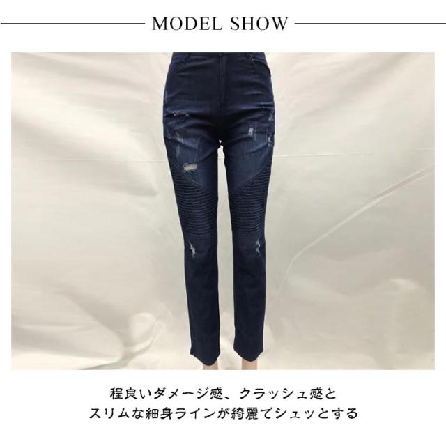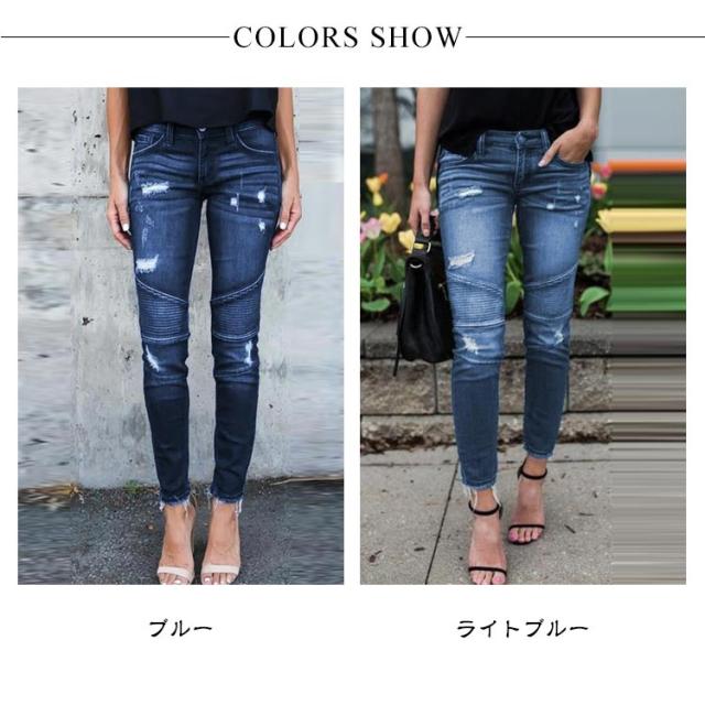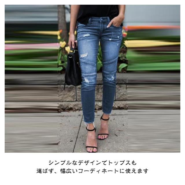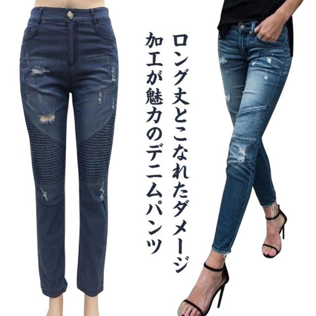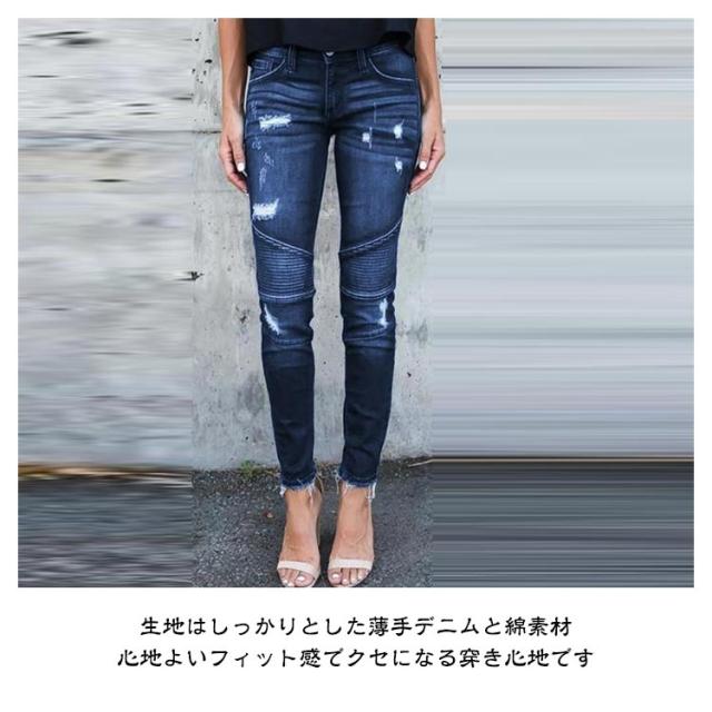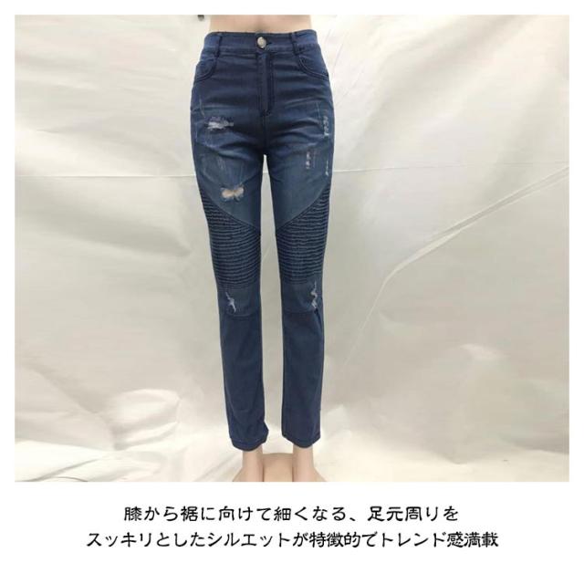 ダメージデニム デニムパンツ スキニー レディース ハイウェスト ジーンズ スリム 細身 ストレッチ 美脚美尻 伸縮性 ビンテージ クラッシュデニム ズボン タイト 欧米風 大人 S-3XL