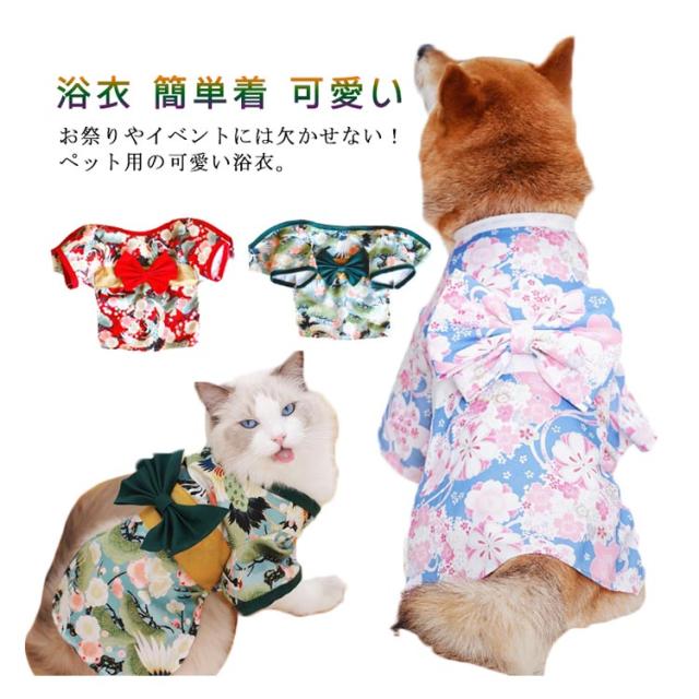 ペット 犬 猫 浴衣 マジックテープ 和服 和風 着物 ドッグウェア ペット用品 お祭り お散歩 簡単着脱 可愛い 全2色