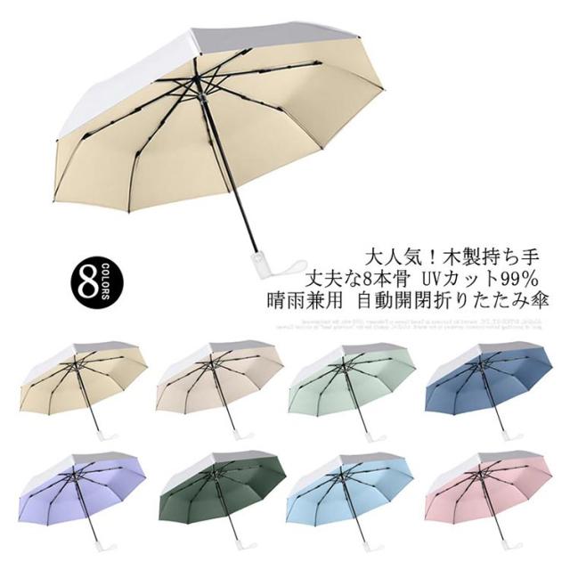 日傘 UVカット100% 完全遮光 折りたたみ傘 UPF50+ 自動開閉 晴雨兼用 メンズ レディース 木目持ち手 厚手 耐風撥水 紫外線遮断 二重 遮光 遮熱 8本骨 軽量 無地 日よけ対策 男性 女性